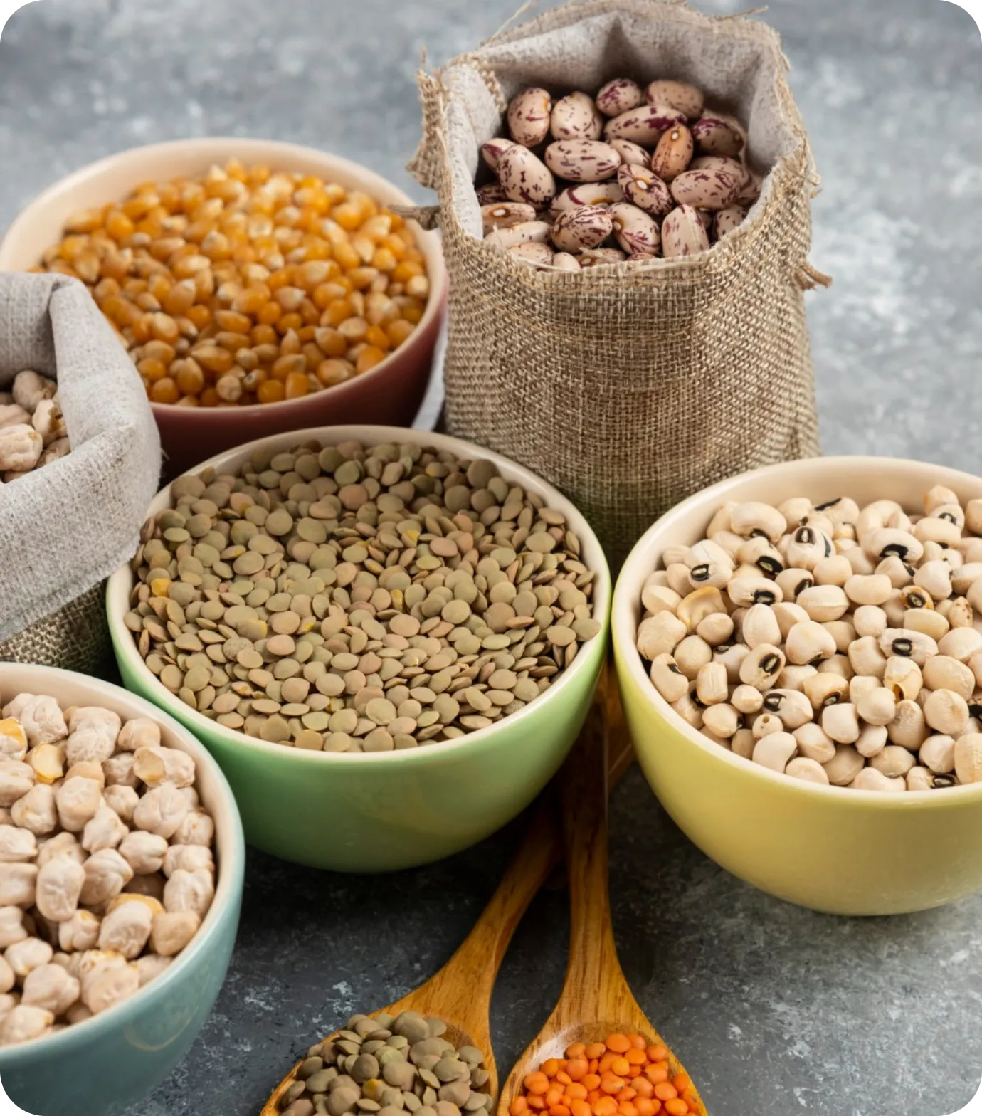 – Includes staples like Toor Dal, Moong Dal, Masoor Dal, Chana Dal, Urad Dal, etc., used in traditional Indian cooking.