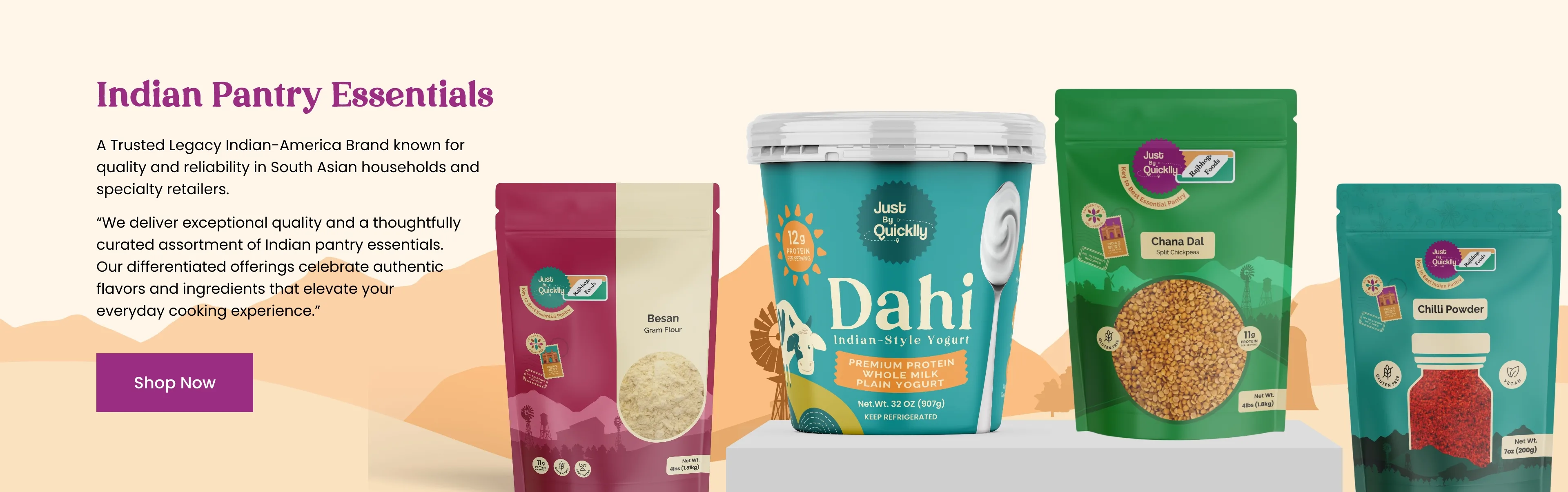 Just by Quicklly bring you premium Indian pantry essentials. 100% natural, vegan, halal, and preservative-free. From dals and flours to spices, poha, yogurt, and snacks, every product is crafted for authentic taste and superior quality.
